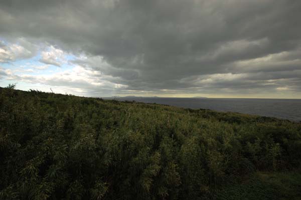 海と山と空、遠くに小島がいくつか。