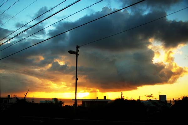 読谷の岬からの帰り、当然バスは無く、通る車すら無い。