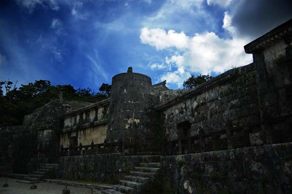 モノレール終着駅を降りてから1キロほど、大きな石垣が見えてくる。